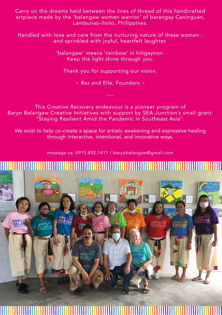 By your purchase, you’re offering a Kindred Partnership with Baryo Balangaw to establish the women’s Seed Fund — 100% of the sale goes to them and their collective.